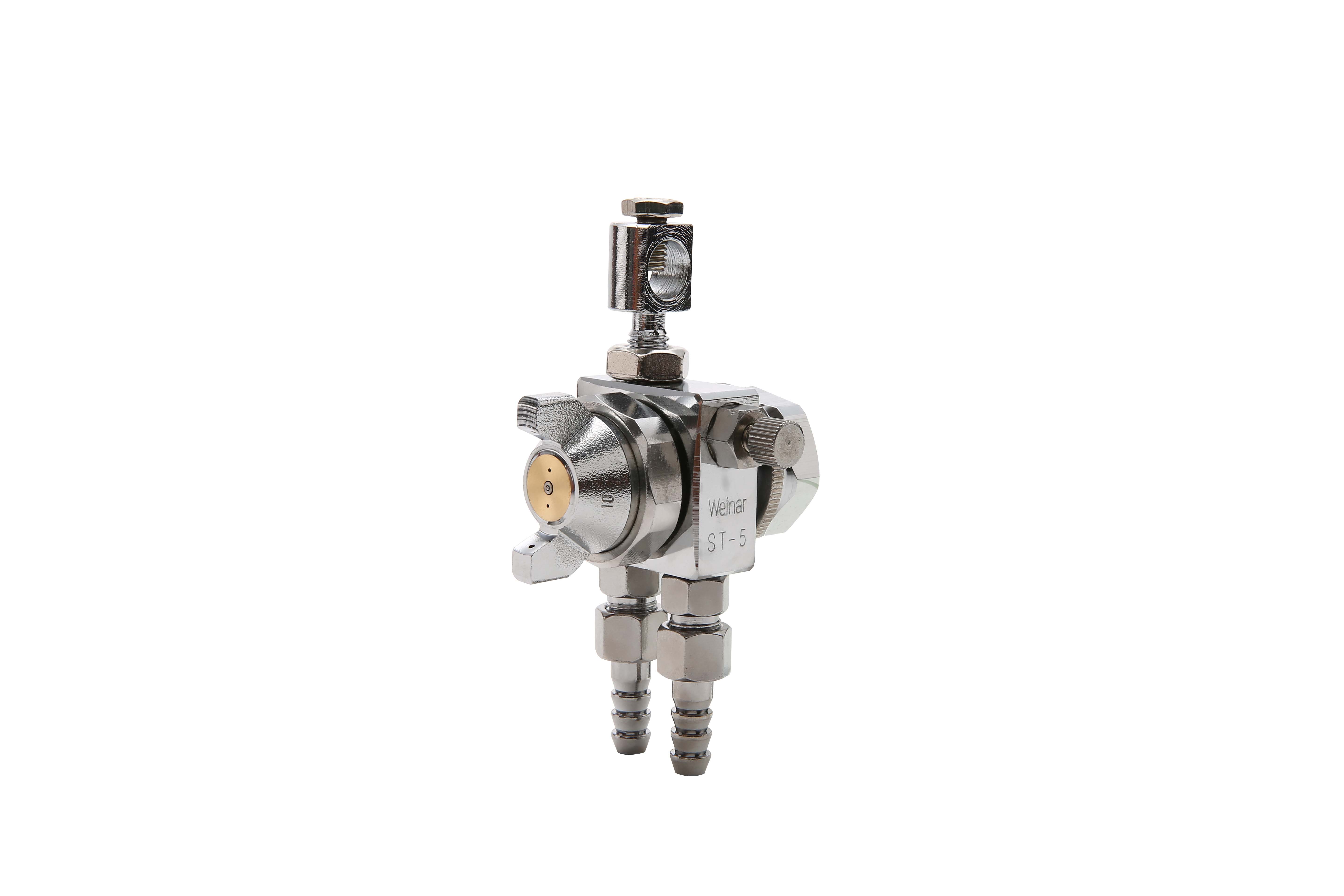 ST-5系列的自动羞羞色国产精品影院,其『活塞作动用空气』与『雾化用空气』乃是共用的,因此,压缩空气的压力必须高于活塞弹簧的簧力(2kg/cm2),否则,羞羞色国产精品影院将无法正常运作,ST-5系列的自动羞羞色国产精品影院适用在高雾化要求及羞羞色国产精品影院开关频率较低的工作环境。